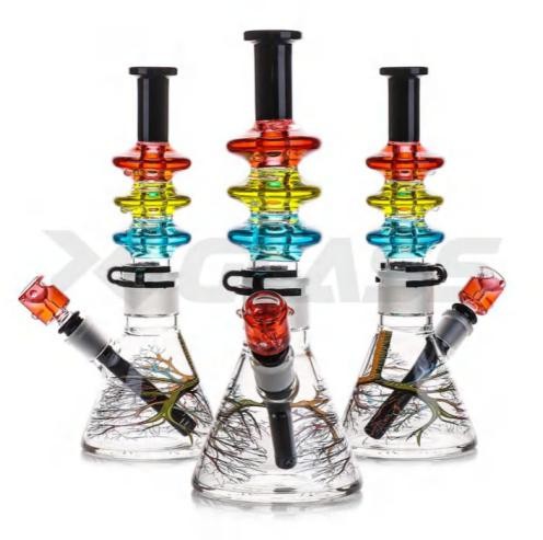3 LAYER ROUND COLORFUL GLASS BONG STAND 12"