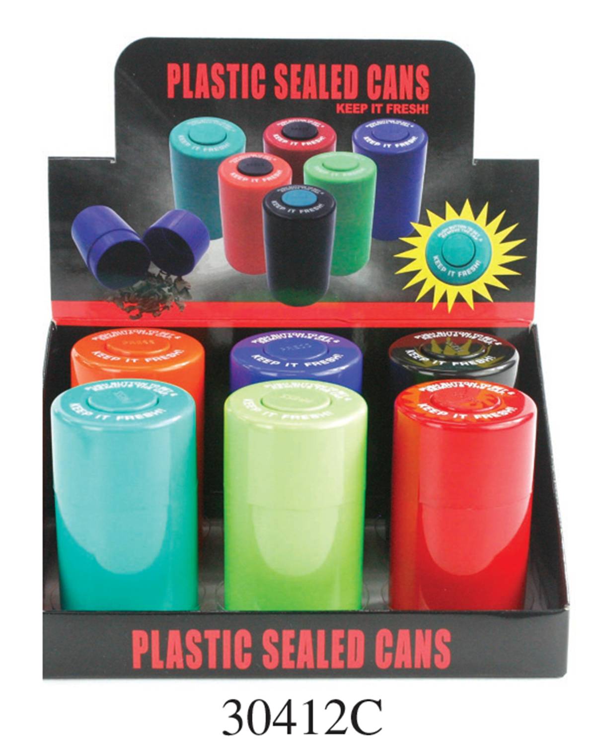 30412-C/Airtight plastic safe can/assorted color/4"/6PK