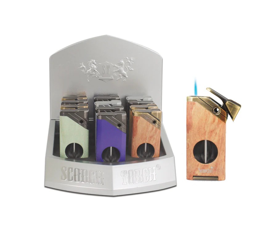 61837-1/Scorch Torch/Single Torch Lighter with Built-In Cigar Cutter/Assorted Designs/12PK