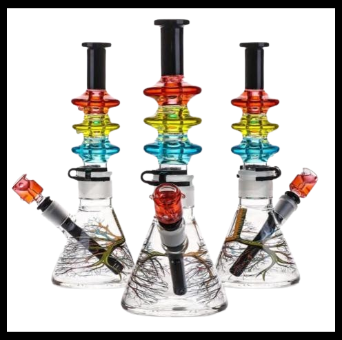 CB136 3 LAYER ROUND COLORFUL GLASS BONG STAND 12" 1CT