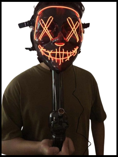 GAS MASK WITH SKULL BONG AND LED LIGHTS WHITE AND RED