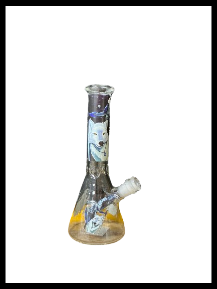 MWP245 WOLF DESIGNGLASS BEAKER BONG 8" 1CT
