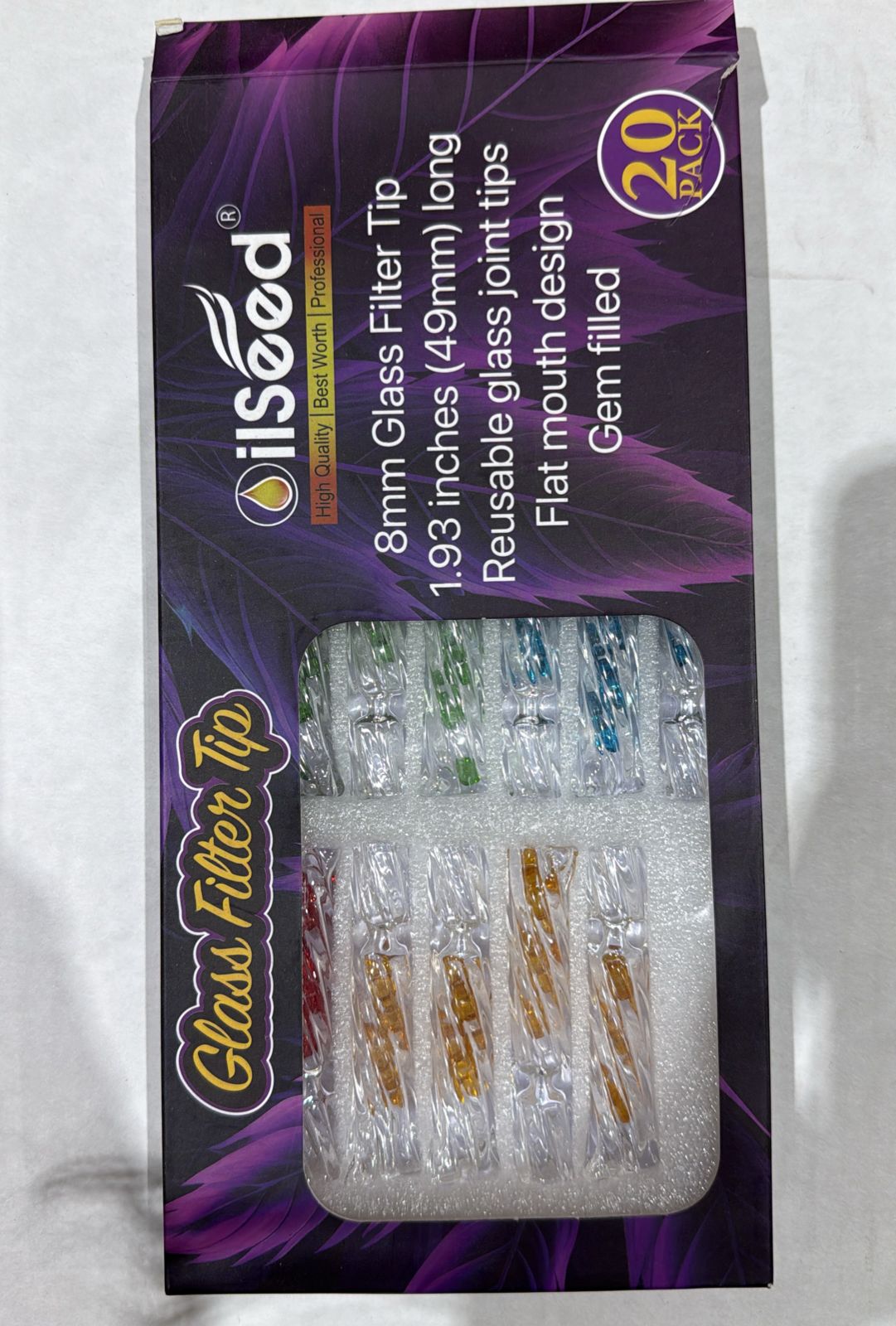 OIL SEED GLASS FITTER TIPS WITH SPIRAL AND DIAMOND 1.9 INCH 20PK