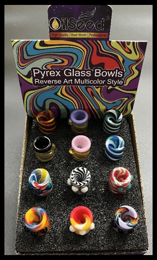 Plyre glass bowl Reverse Art multicolor designs 12CT