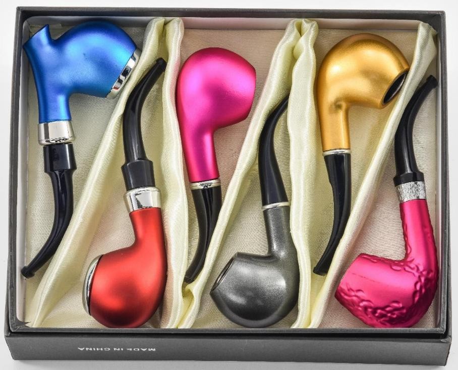 WOOD TOBACCO PIPE 6C DISPLAY COLORED