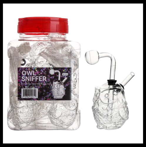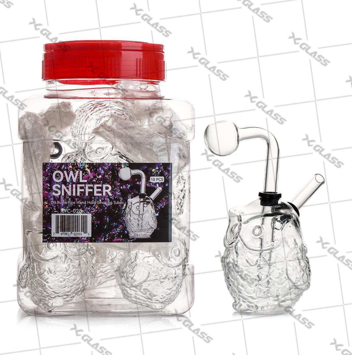 XYC028 OWL SNIFFER OIL BURNER PIPE HAND HOLD SMOKING TUBES 10PK 1CT JAR